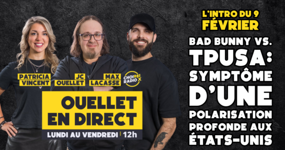 L’introduction du show du 6 février 2026. Les animateurs s’amusent à discuter de l’appellation de Mel Trudel, oscillant entre « la bonne femme » et d’autres surnoms, tout en partageant des anecdotes sur des sujets variés comme les lampes UV pour ongles et l’écologie. Ils évoquent également le Super Bowl, avec des pronostics colorés sur […]