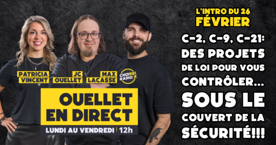 L’introduction du show du 25 février 2026. La CAQ est au cœur des préoccupations, avec des sondages indiquant une chute préoccupante de sa popularité dans la région de Québec. Les animateurs expriment leur désir de voir le parti disparaître du paysage politique lors des prochaines élections, tout en proposant un concours pour célébrer un éventuel […]