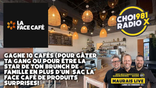 Cette semaine, écoute Maurais Live et grâce à La Face Café qui s’unit avec Tatum Café 10 cafés + un sac suprise!